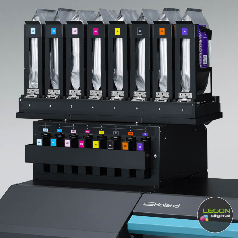 El sistema de tinta Roland XT-640 garantiza una impresión fiable incluso en grandes tiradas gracias a las bolsas de un litro envasadas al vacío. En el modo de cuatro colores las tintas están disponibles en dos bolsas por color, el Sistema de cambio de tinta patentado de Roland cambia automáticamente a la bolsa de reserva cuando se agota la bolsa principal, lo que te permite sustituir una bolsa vacía sin detener la impresora. Y si no puedes estar pendiente de la impresora, la aplicación Roland Printer Assist para iPad te permite gestionar a distancia sus funciones más habituales.